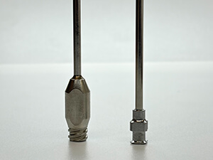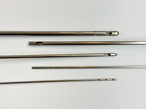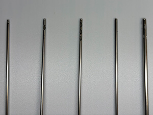 ドクター理想を実現するために、穴・太さ・長さ・曲がりに至るまで綿密に打合せを行い、オリジナルカニューレを製作しています。